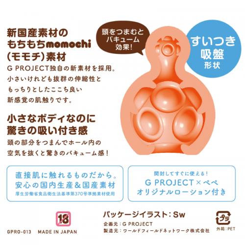 「もっと気軽にオナホールを楽しもう。」気軽に使えるおてごろ価格、かわいいサイズのオナホール。新国産素材のもちもちmomochi(モモチ)素材を採用。抜群の伸縮性ともっちりとしたここち良い新感覚の肌触り、頭の部分をつまんでホール内の空気を抜くと驚きの吸い付き感。内部は吸い付ききゅうばん形状。直接肌に触れるものだから、安心の国内生産&国産素材。パッケージイラストはSw先生の書き下ろしです。