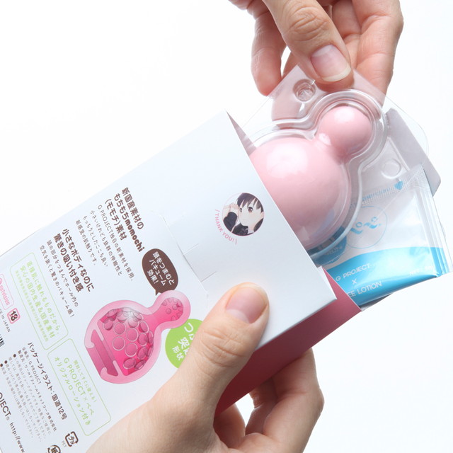 「もっと気軽にオナホールを楽しもう。」気軽に使えるおてごろ価格、かわいいサイズのオナホールの登場です。新国産素材のもちもちmomochi(モモチ)素材を採用。小さいけれども抜群の伸縮性ともっちりとしたここち良い新感覚の肌触り、頭の部分をつまんでホール内の空気を抜くと驚きの吸い付き感。内部はヒダヒダらせん形状を採用。直接肌に触れるものだから、安心の国内生産&国産素材。開封してすぐ使えるG PROJECT x ぺぺオリジナルローション付き。パッケージイラストはいま注目の桜はんぺん氏の書き下ろしです。